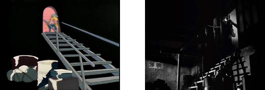 La sombra de la baby siter ladrona se cierne sobre los niños de un modo similar a como lo hace la sombra del impostor Harry Powell (Robert Mitchum) en la película.