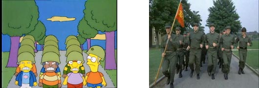El plano de las tropas de Bart entrenando con el sol brillando de fondo sobre un cielo anaranjado es igual al entrenamiento de las tropas del Sargento Hartman.