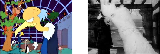 El pájaro con los rasgos faciales de Burns que se ve en primer plano cuando el viejo millonario está esperando a que los matones le traigan a Homer, es una referencia al plano de la cacatúa de «Ciudadano Kane».