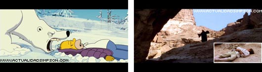 La forma en que «Doña Pechugona» encuentra a Homer y el lugar al que se lo lleva recuerda mucho al primer encuentro entre Luke Skywalker y Obi-Wan Kenobi en «La guerra de las galaxias». En «Los Simpson: la película», Homer está tirado en el suelo inconsciente y un oso está a punto de atacarle cuando en el horizonte aparece la mujer esquimal gritando y levantando los brazos para espantarlo. En «La guerra de las galaxias», Luke Skywalker está tirado en el suelo inconsciente mientras varios Tusken registran su nave, pero justo en ese momento aparece en el horizonte Obi-Wan Kenobi vestido con una túnica y consigue alejar el peligro levantando los brazos y gritando.
