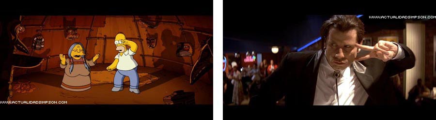 Durante el ritual de «Doña Pechugona» para conseguir que Homer tenga una revelación, éste se pone a hacer los gestos del famoso baile de Vincent Vega (John Travolta) y Mia Wallace (Uma Thurman) en «Pulp Fiction».