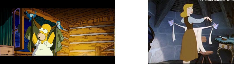 Antes de intimar con Marge, unos pajarillos azules (y un aguila) se encargan de desvestir a Homer mientras suena una sintonía al estilo Disney. En la película «La Cenicienta», unos pajarillos azules acompañaban constantemente a Cenicienta y también se encargaban de vestirla.