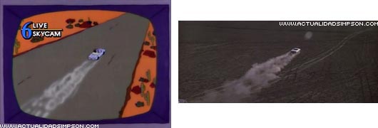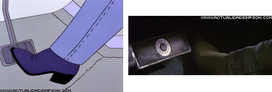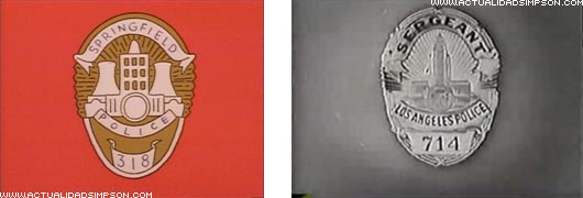 Referencia televisiva. El final del episodio, con los acusados en primer plano sobre un fondo gris mientras se leen sus sentencias, la sintonía que suena y la placa de policía bajo los títulos de crédito son una parodia de la forma en que acababan habitualmente todos los episodios de esta serie de los años 50.