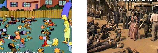 El movimiento de la cámara y la música del plano en el que se ve a los cientos de niños heridos por la cama elástica de Homer es igual al plano de «Lo que el viento se llevó» en el que se ve a cientos de soldados heridos tumbados en el suelo. En Los Simpson es Marge quien contempla la escena y en la película es Scarlett.