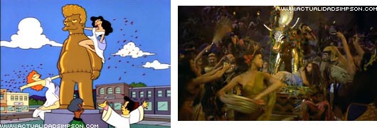 Cuando Springfield se rinde a las doctrinas de Brad Goodman, unas bellas mujeres aparecen adorando y lanzando pétalos a una estatua dorada con la imagen del terapeuta, de la misma forma que los israelitas adoraban al falso dios con forma de becerro de oro en «Los diez mandamientos».