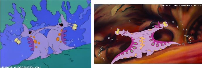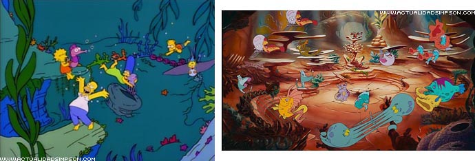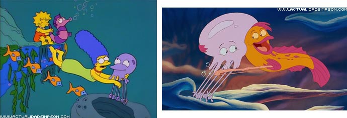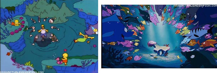 Toda la escena en la que Homer imagina su nueva vida en el fondo del mar junto a su familia mientras canta «En el fondo del mar» es una parodia de «Under the Sea» («Bajo el mar» en español), el famoso número musical de «La sirenita».