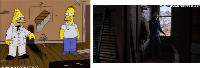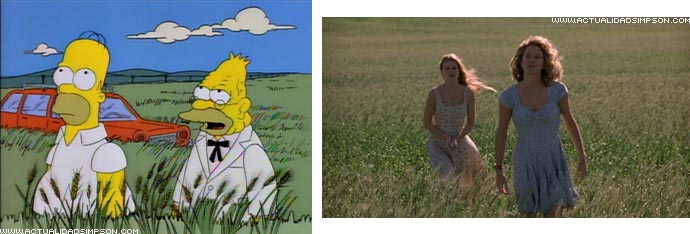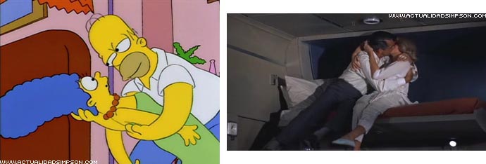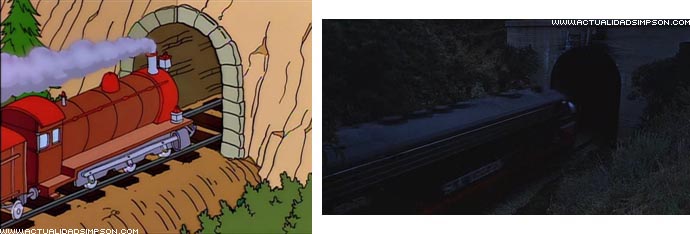 Tras tomar el tónico revitalizante del abuelo, Homer agarra apasionadamente a Marge y ambos se encierran en el dormitorio. La siguiente imagen que vemos es la de un tren entrando en un tunel. Ese plano copia el utilizado por Alfred Hitchcock en la última escena de «Con la muerte en los talones» cuando Eve (Eva Marie Saint) y Roger (Cary Grant) se besaban apasionadamente en el compartimento de un tren.