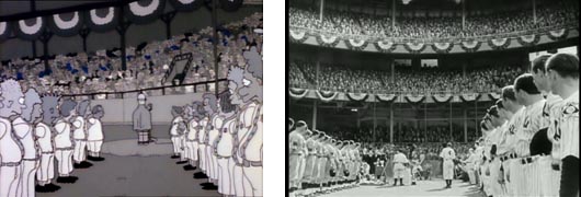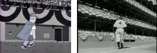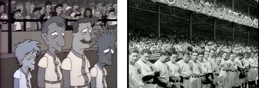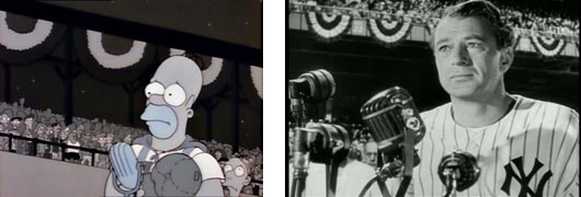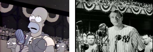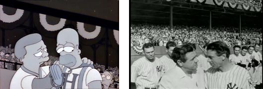 Toda la secuencia en blanco y negro con el emotivo discurso de despedida de Homer antes de marcharse a Ciudad Capital es calcada plano a plano al discurso de despedida de Gary Cooper en la película, con un pasillo de jugadores, la afición escuchándole en silencio, sus compañeros emocionados y el lento caminar hacia los vestuarios.