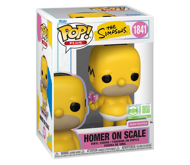 Funko ha anunciado una nueva y exclusiva figura de Homer Simpson: Pop! Plus Homer on Scale (Homer sobre la báscula), una edición limitada ULTRA de solo 5.000 unidades en todo el mundo. La figura muestra a Homer subido a una báscula, incluye un protector UV Premium Plastic POP! Protector y cuenta con un sistema de autenticación mediante tecnología Octane5. Estará disponible a partir del 7 de noviembre de 2025 a las 17:00 (hora GMT) por 30 euros.
