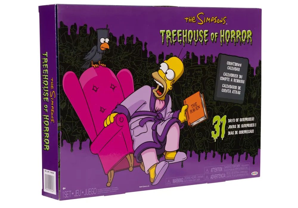 JAKKS Pacific ha lanzado un nuevo producto oficial que encantará a los fans de Los Simpson y, en especial, a los seguidores de los especiales de Halloween: el Treehouse of Horror Countdown Calendar, un calendario de adviento o cuenta atrás con 31 días de espeluznantes sorpresas.