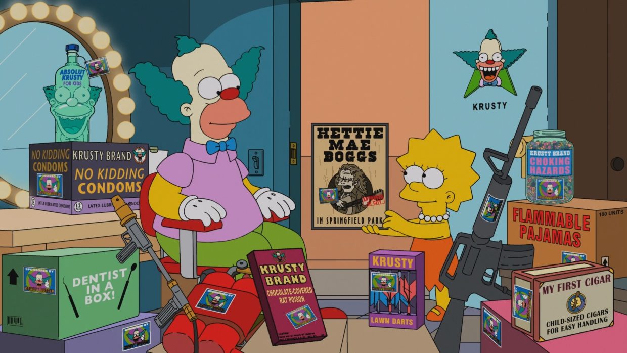 Krusty patrocina el cartel del concierto de Hettie Mae Boggs y en su camerino podemos ver otros muchos productos patrocinados por el payaso. Vale la pena verlos con calma…